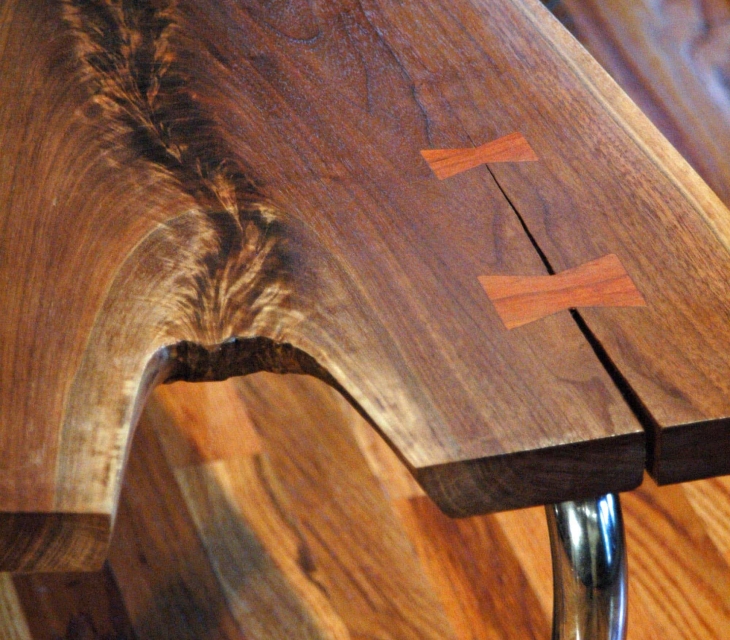 Concrete and walnut dining table