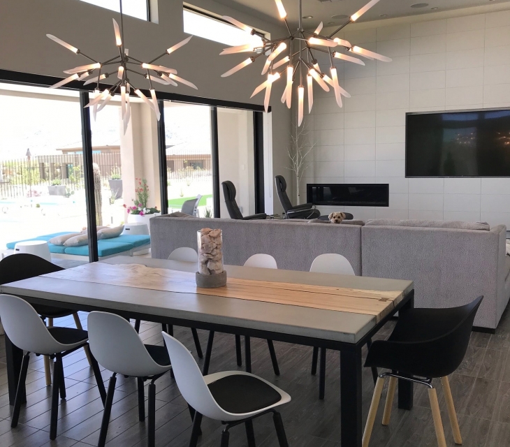 ‘Tahoe’ concrete and claro walnut table