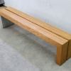 Laminated plywood bench with integral waterfall leg on one side and cast concrete leg on the other. Bench sections and concrete leg connected with stainless steel standoffs.