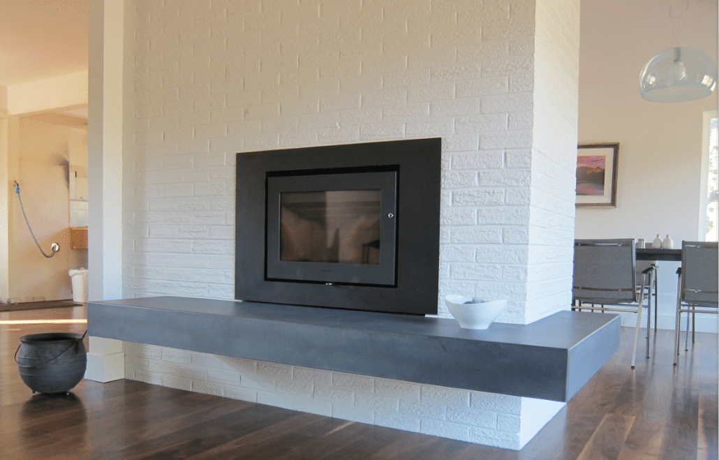 Floating concrete hearth in ‘charcoal’ grey